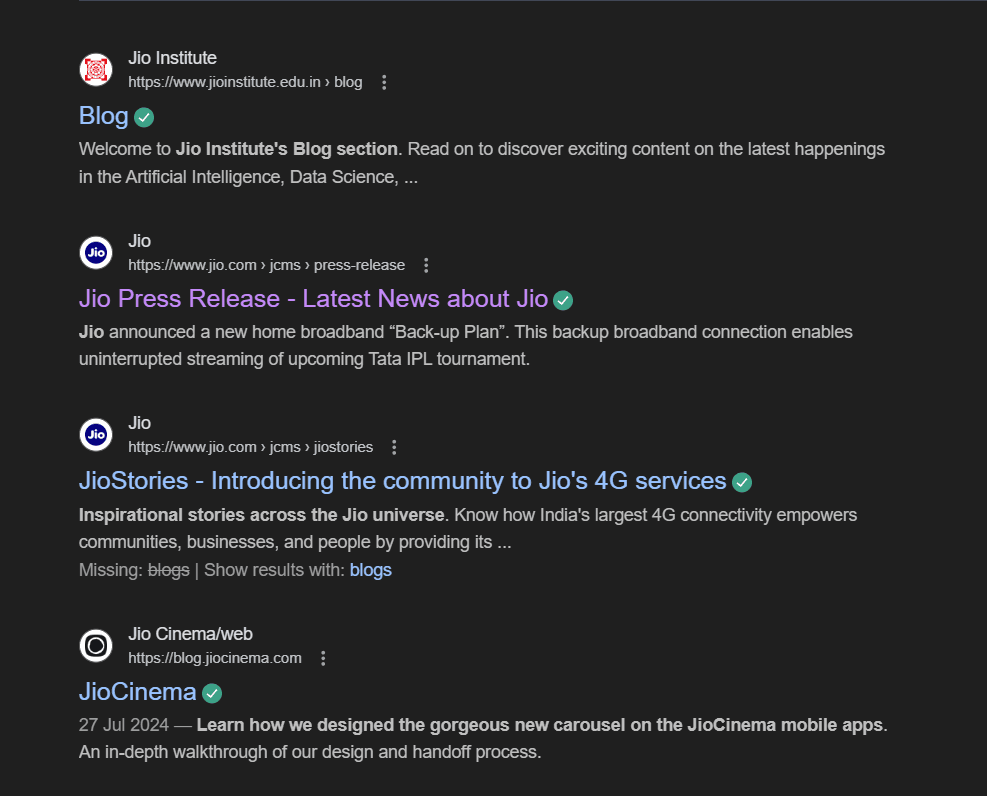 Better ranking: Just type Jio stories or Jio blogs, and the page will appear right there in the SERP. Earlier, the specific story page visibility was much lower.
